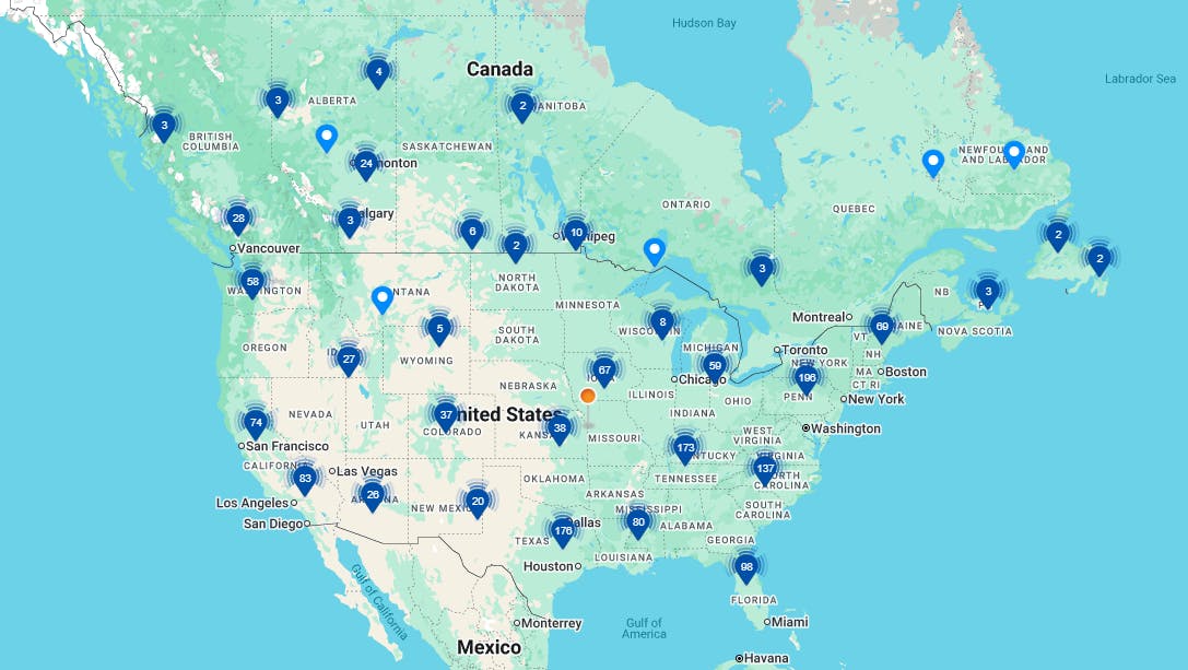 These products are high-velocity, critical consumables with regular replacement cycles. Many are also heavy, bulky, or weather-sensitive, making distribution efficiency and jobsite timing a key customer value prop. As of December 2025, QXO operates more than 600 branches across the US and Canada, inherited from Beacon’s legacy network. In 2024, approximately 97% of Beacon’s revenues were generated in the US, with Canada accounting for the remaining 3%. This physical footprint enables next-day delivery to most major metro areas and construction hubs across North America.