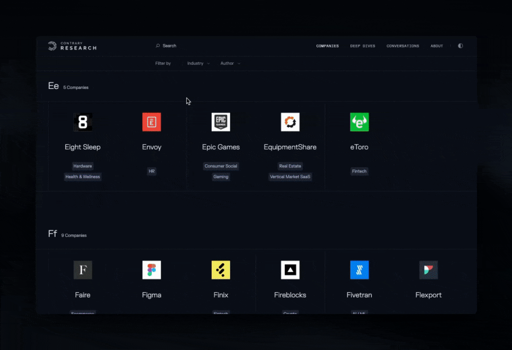 We dug in to better understand the most important aspects of the user experience for consumers of private market research we should build around. As a result, we’re pleased to announce an update to the Contrary Research website!